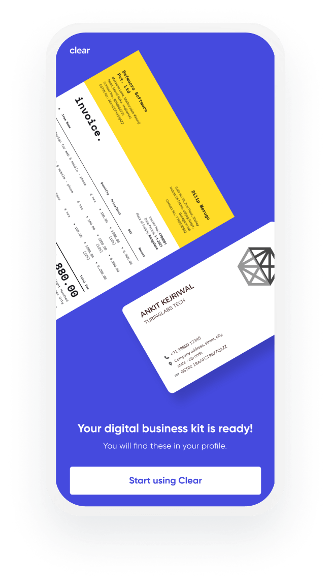 Making GST invoices & maintaining books became difficult for me since I started my business. My friend suggested Clear, so far loving it.
